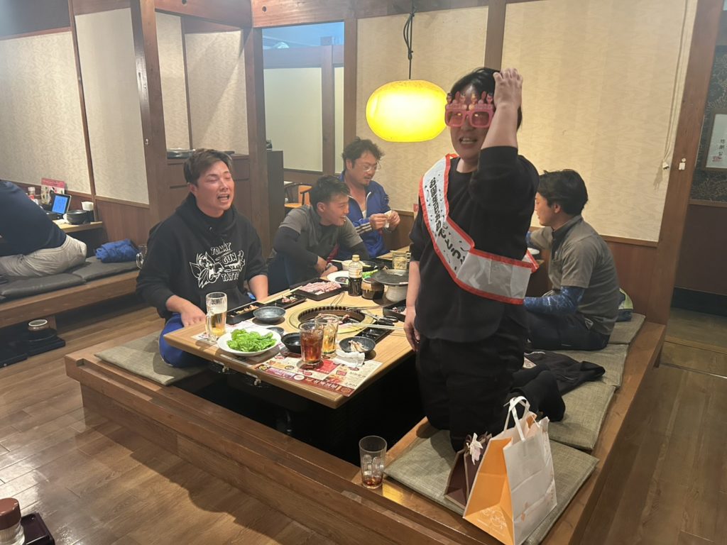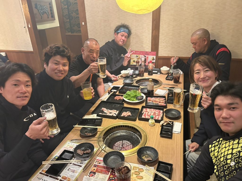 試合後は、皆さんで焼肉を食べながら、試合の話や仕事の話、プライベートの話など両会社の社員同士で交流することができ、会社の垣根をこえて仲を深める事ができたと思います!
