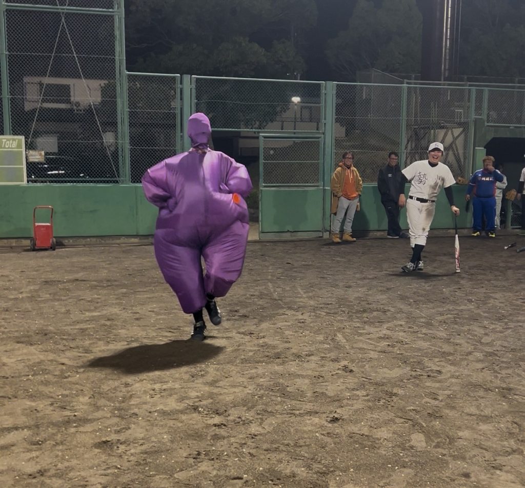 試合の途中に、勢州建設チームは助っ人として恐竜🦖や謎の紫マン🟣を投入したりと、秘策も用意しており、林建材チームもびっくりした様子!?🤣