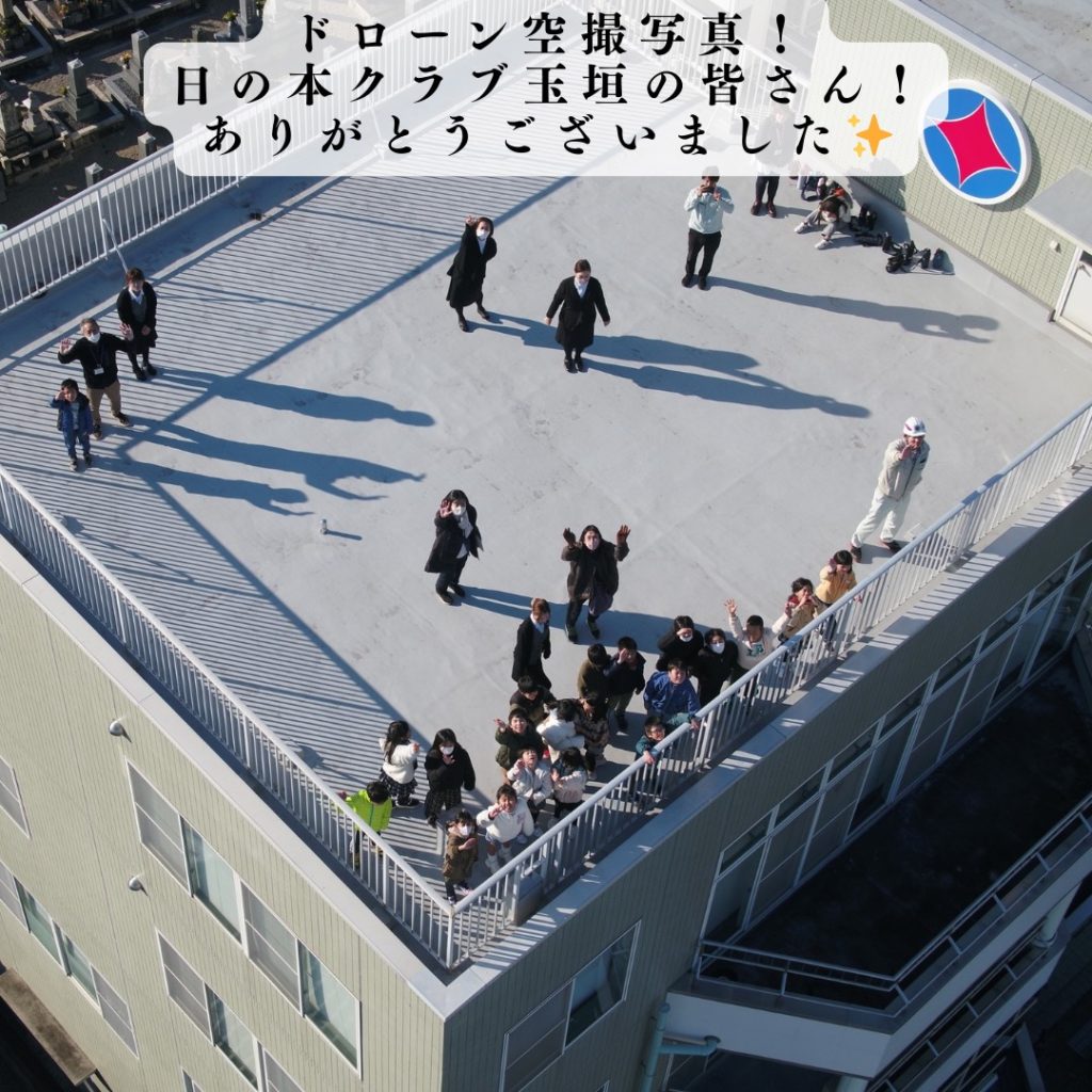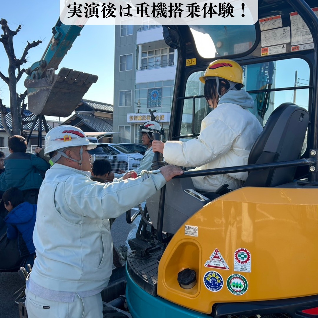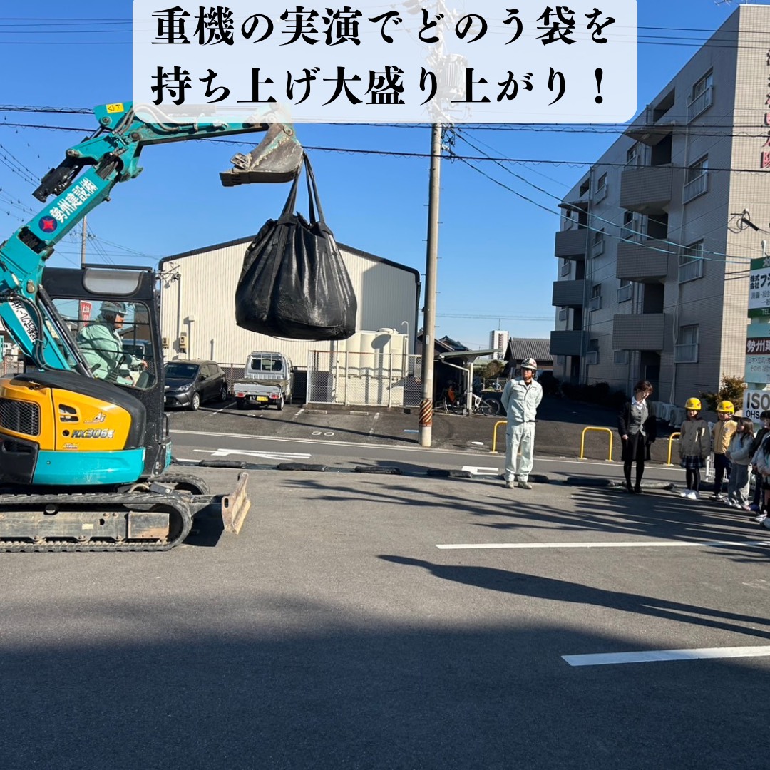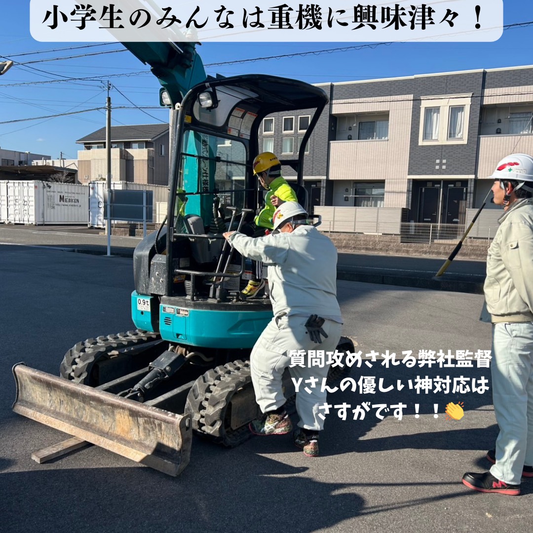 2026年1月7日に日の本クラブ玉垣の小学生のみんなに会社見学へ来ていただき、重機の実演と搭乗体験、測量機体験、ドローン空撮実演を行いました。